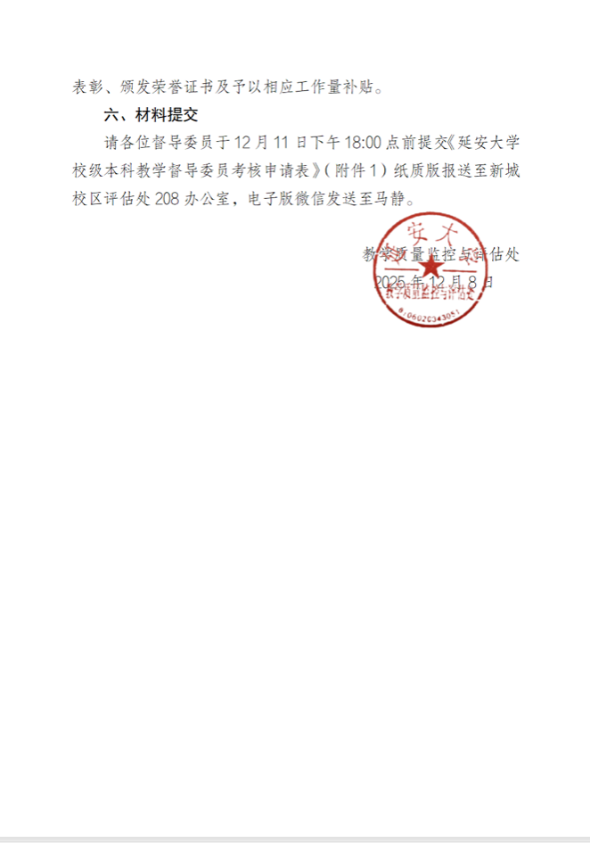 关于开展2025年校级本科教学督导委员考核及评优的通知