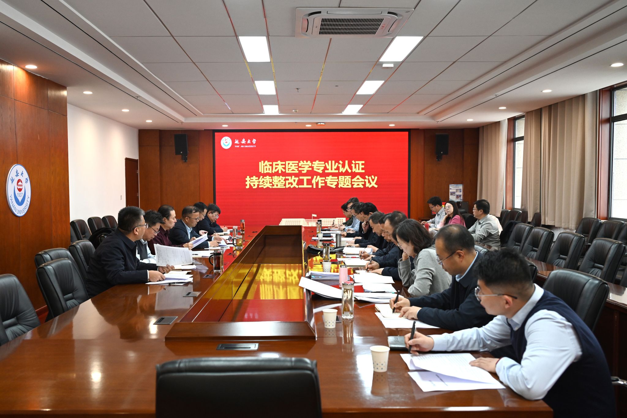 会上,评估处处长王文东汇报了临床医学专业认证整改工作的背景、总体要求及整改方案编制情况。延安医学院院长杨彦玲、附属医院院长马鹏分别汇报了持续整改工作推进情况。随后,与会人员围绕持续整改实施方案、整改有效推进、整改落地见效等方面进行了深入讨论。